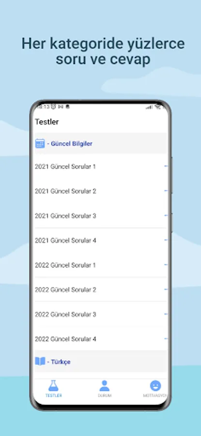 The only application that will increase your Kpss scores with tests, questions, exercises, trials and answers in the Kpss questions application.