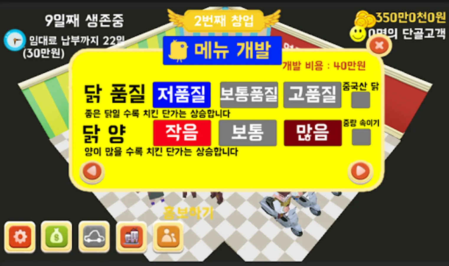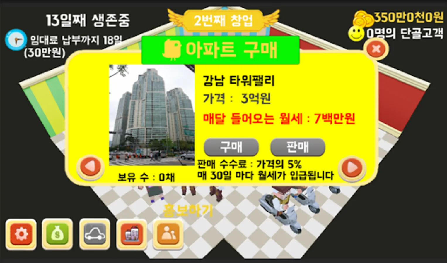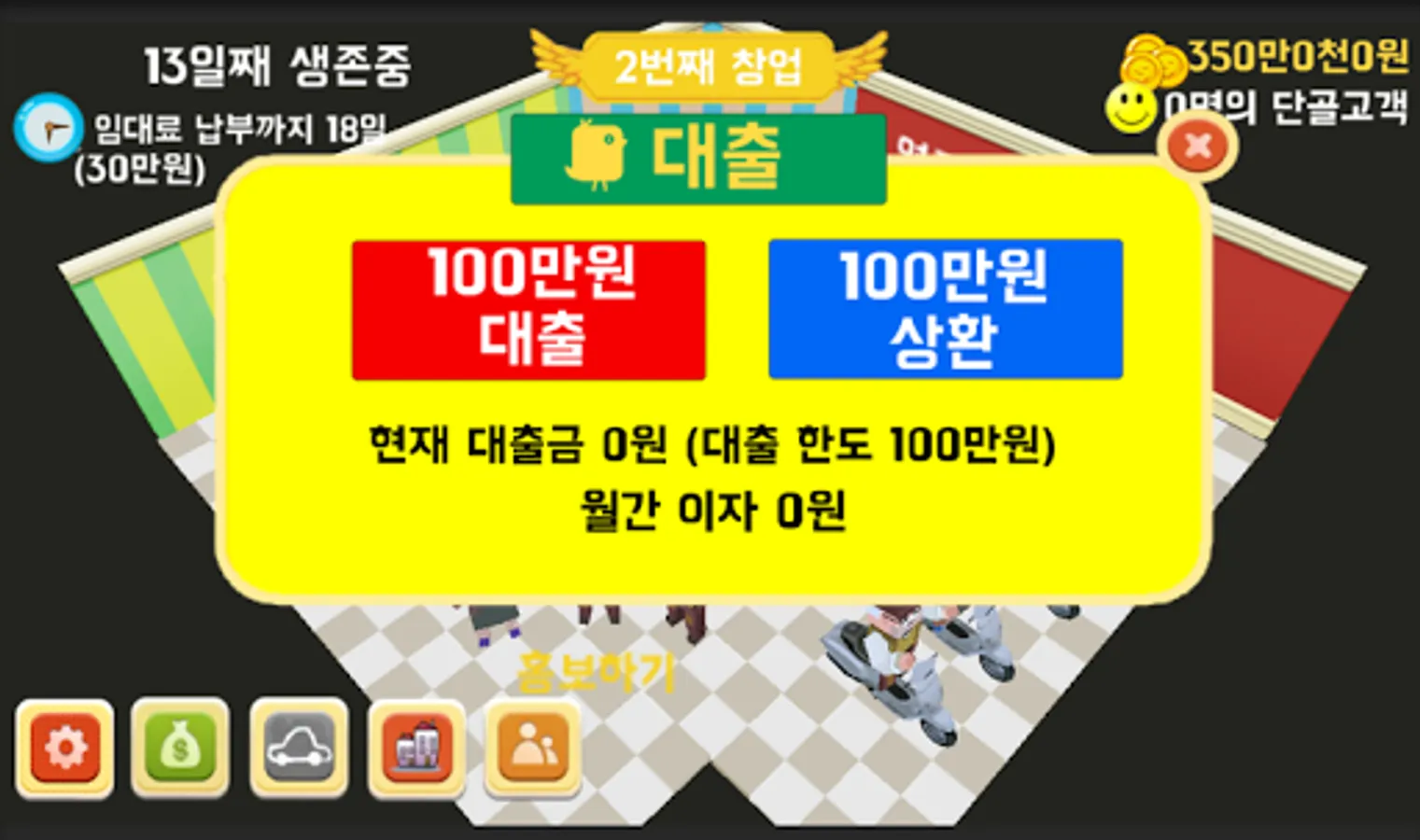가계 운영 스타일의 시뮬레이션(타이쿤) 게임입니다.