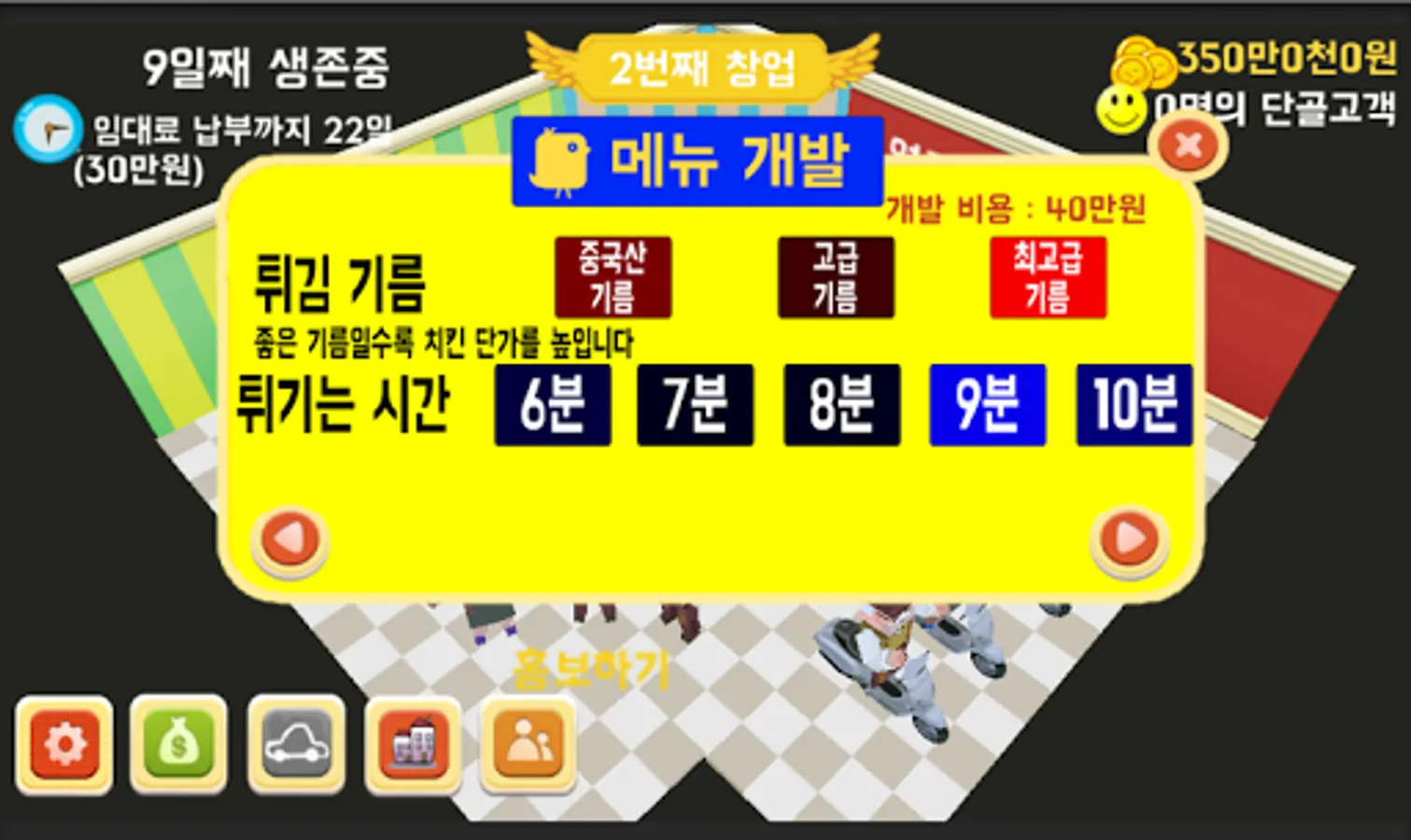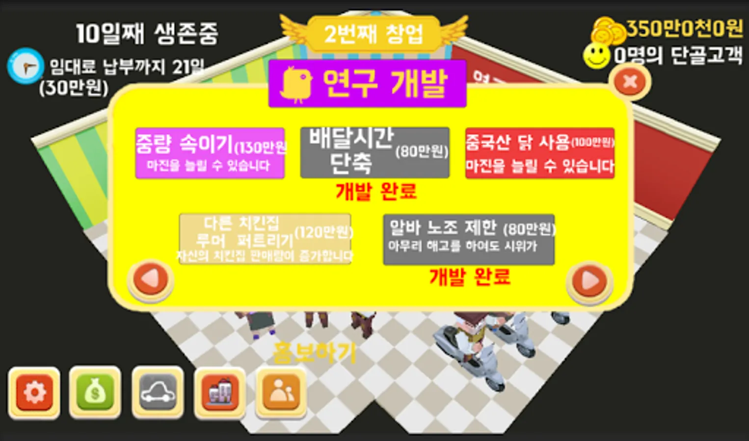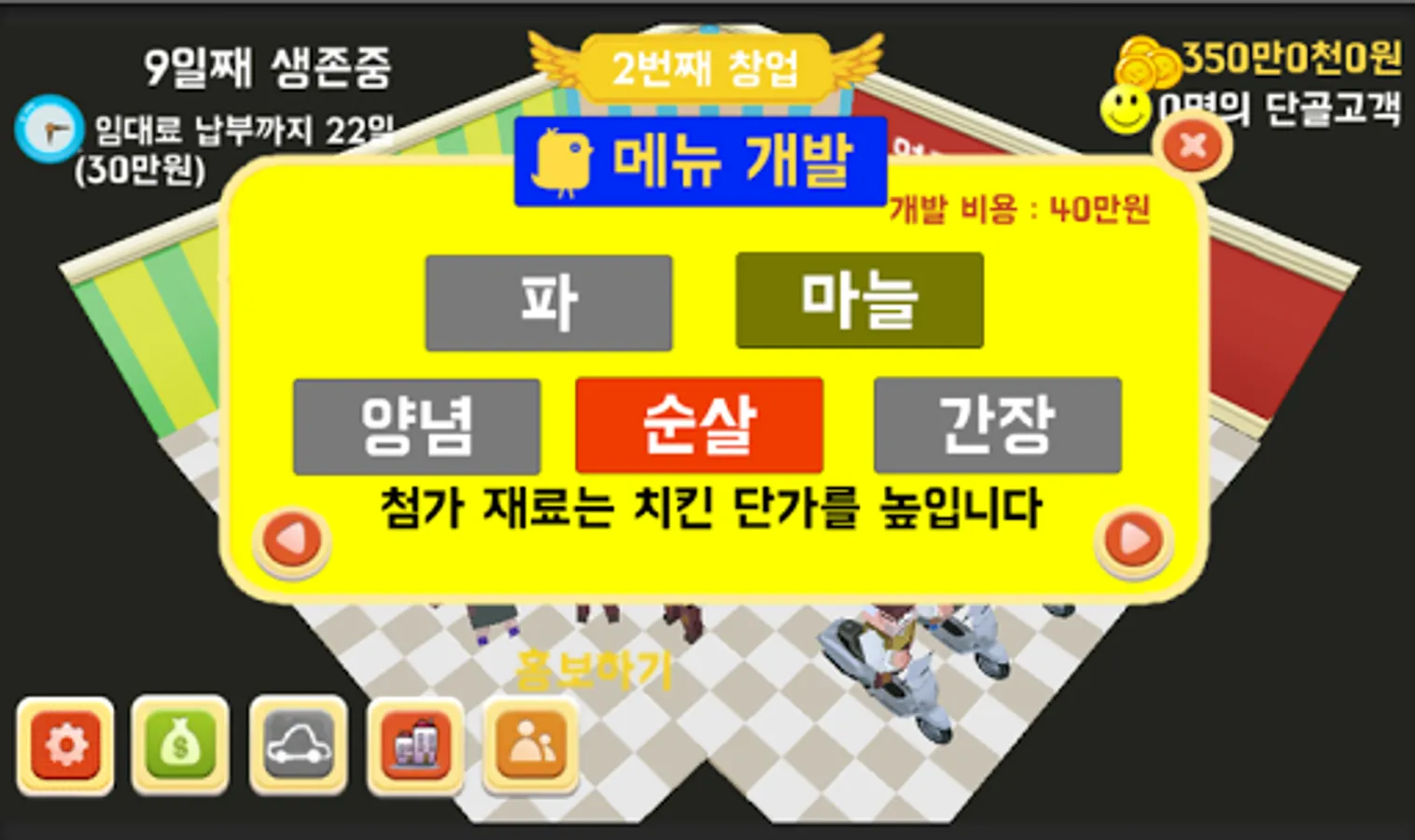 가계 운영 스타일의 시뮬레이션(타이쿤) 게임입니다.
