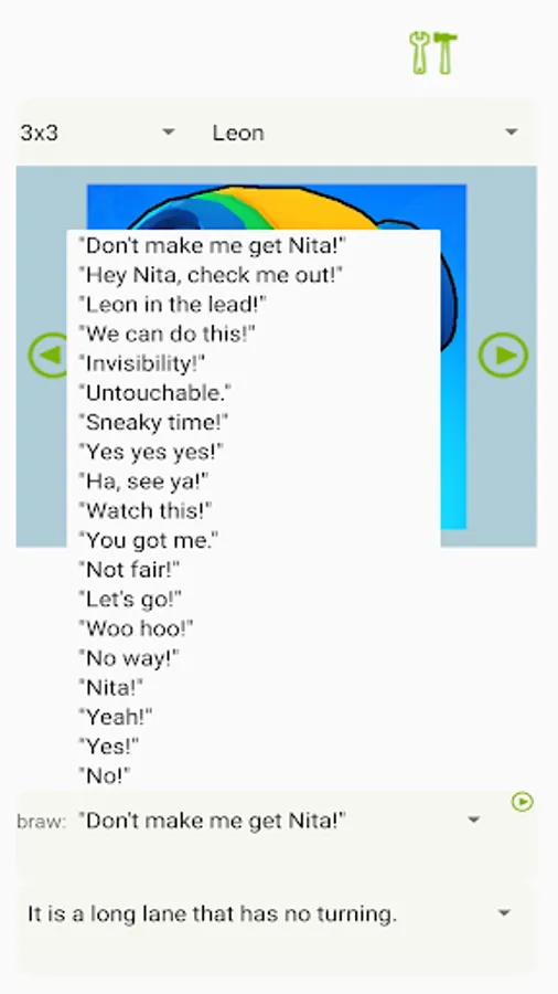 Proverbs and brawl lines are shown in text, and there is also voice recognition, so you can study pronunciation.
