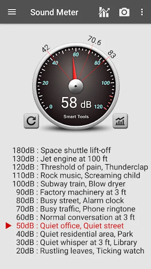 Sound level meter uses your microphone to measure noise volume in decibels(db), and shows a reference.