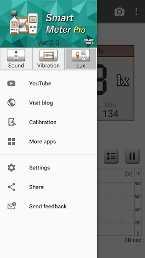 Smart Meter Pro is the NEW 4th set of Smart Tools® collection. It includes 3 tools (Sound meter, Vibration meter and Lux meter).