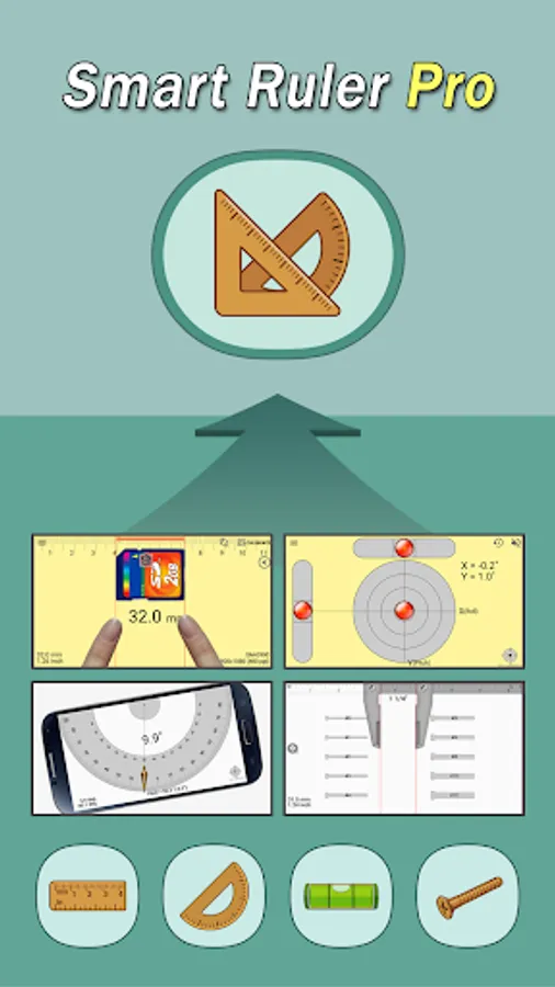Set 1. Smart Ruler Pro: ruler, protractor, level, thread