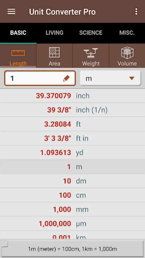 - Basic : length (distance), area, weight (mass), volume (capacity)