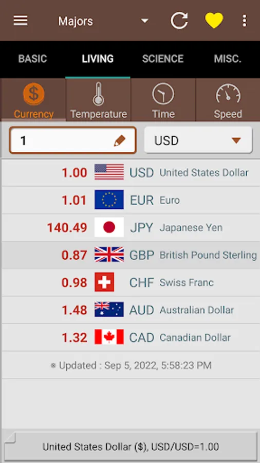 - Living : exchange rate, temperature, time, speed, shoes, clothing, hat, ring