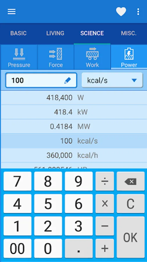 - Science : pressure, force, work (energy), power, torque, flow, current, voltage, density, viscosity, concentration, astronomy