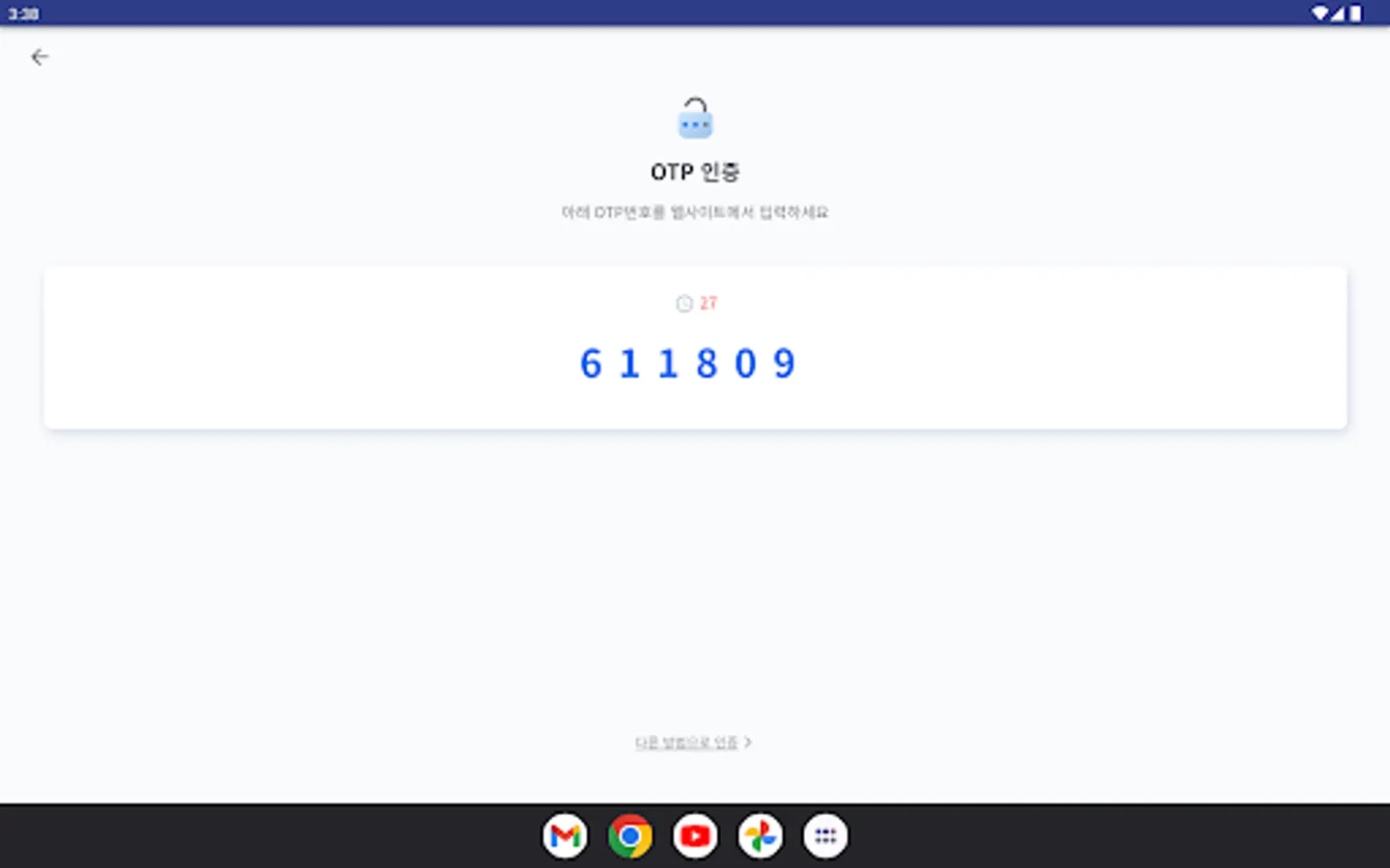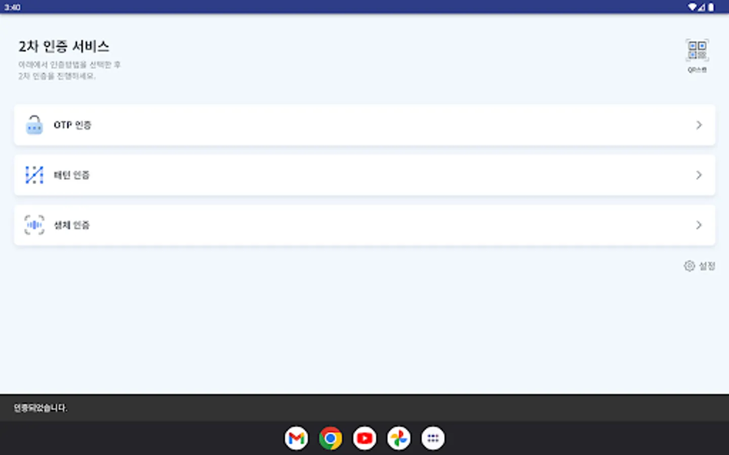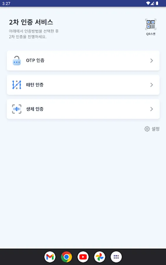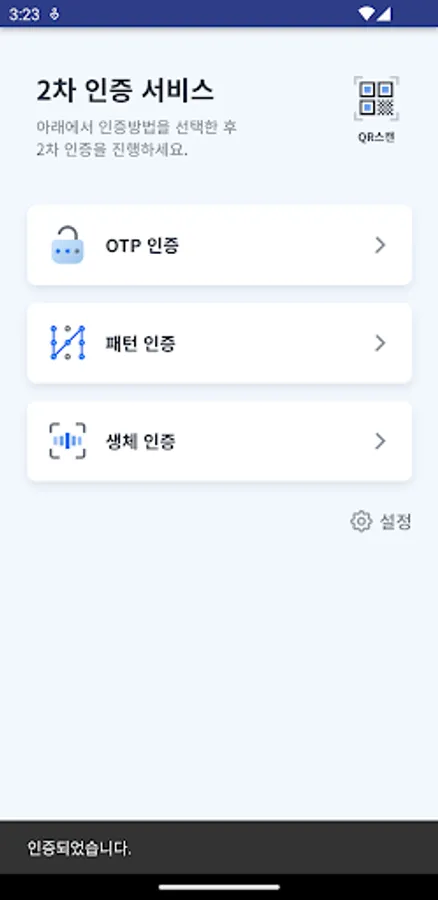 Andong University secondary authentication app. It is an integrated authentication APP that allows user authentication (login) using biometric authentication, pattern, OTP, etc.