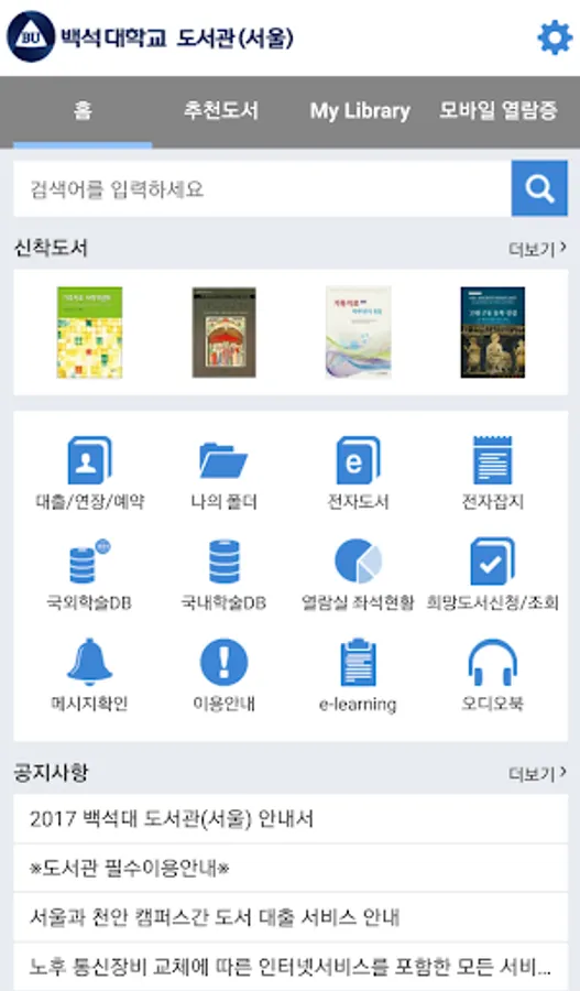 Through the App, you can use the same services provided by the library, such as user guide, integrated search, book rental inquiry and postponement request, and reservation anytime, anywhere.