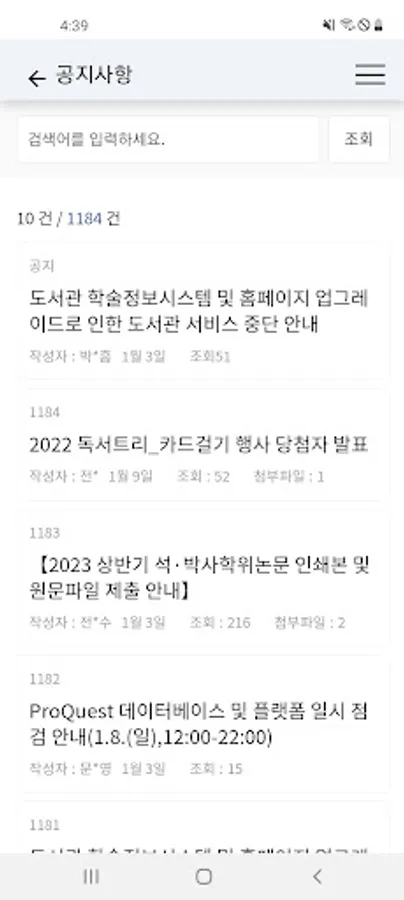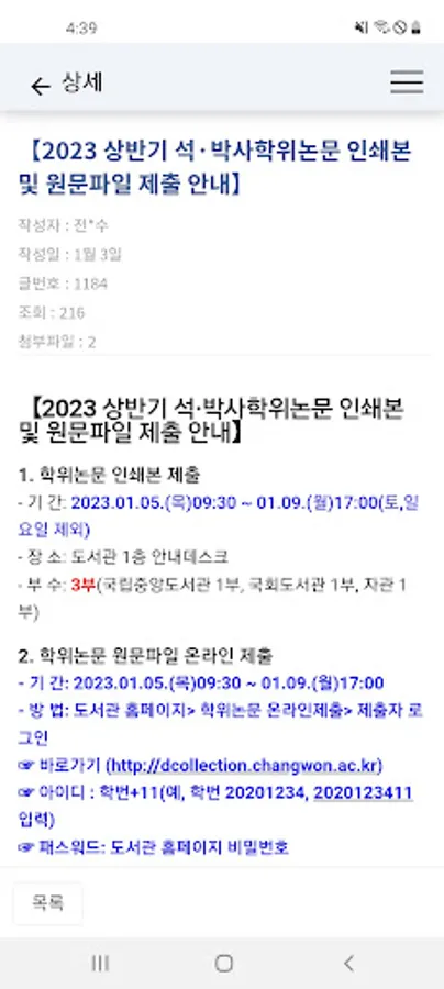 - Provides information such as the introduction of the Changwon National University library, usage hours, book donation information, and room-by-room information in the library.