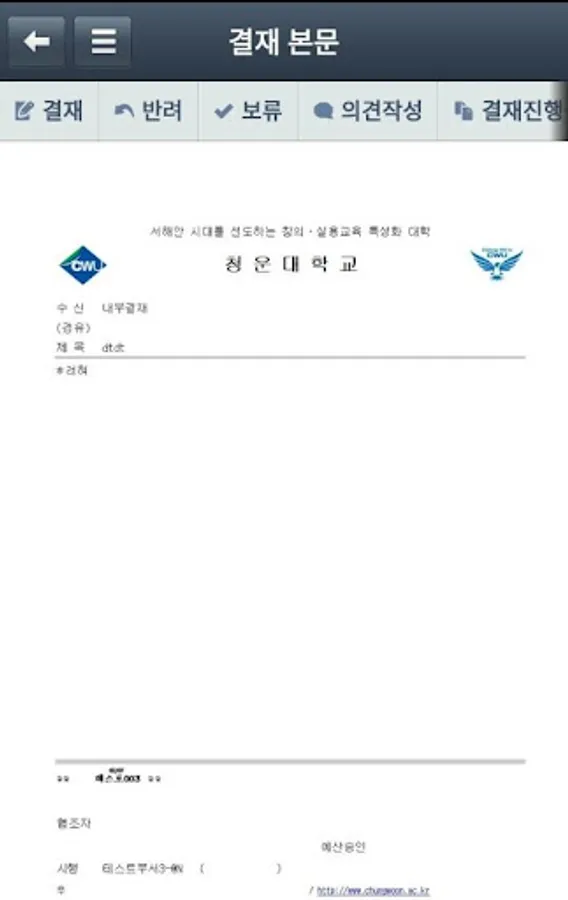 It is an application designed for easy electronic document verification and approval of the University Chungwoon members.