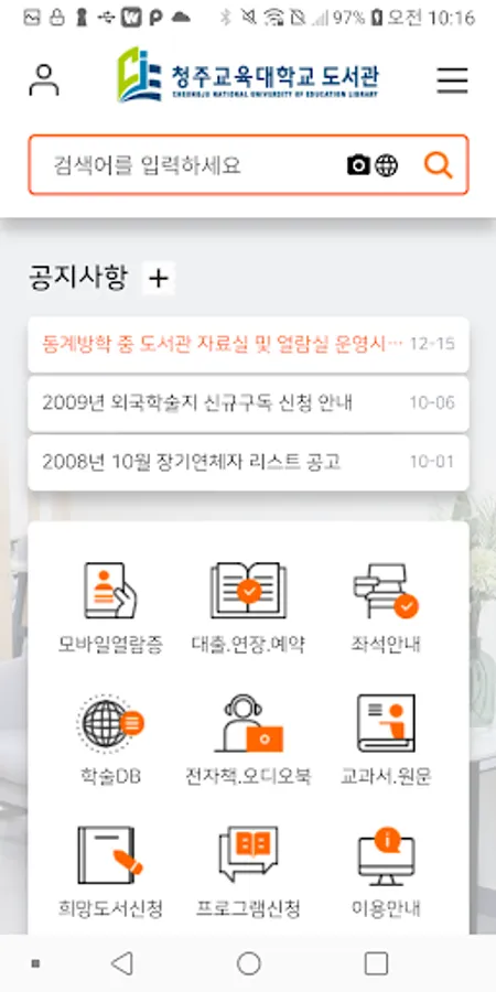 - Request for purchase of the desired book, guidance on using materials by department, e-book, and ask the librarian service are provided.