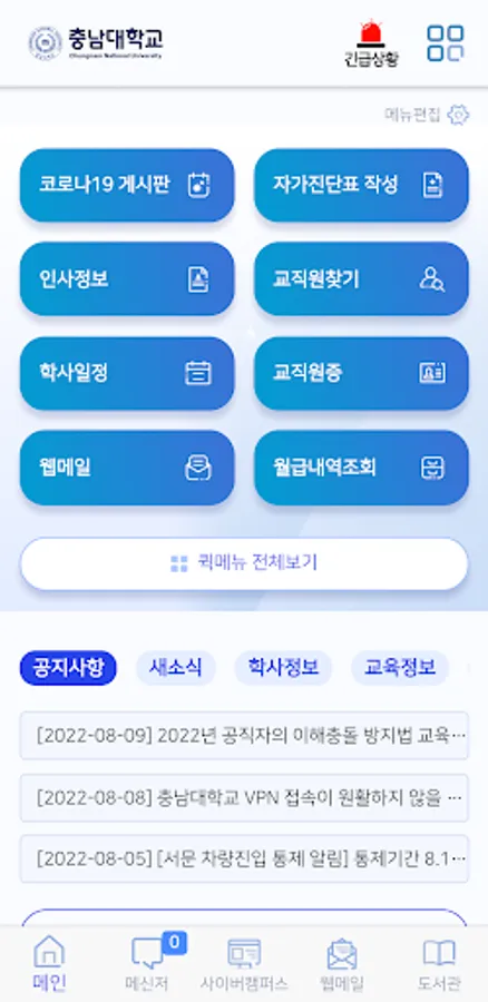 Chungnam National University is a new official mobile service of Chungnam National University that further strengthens the functions of the existing Chungnam National University official mobile service.