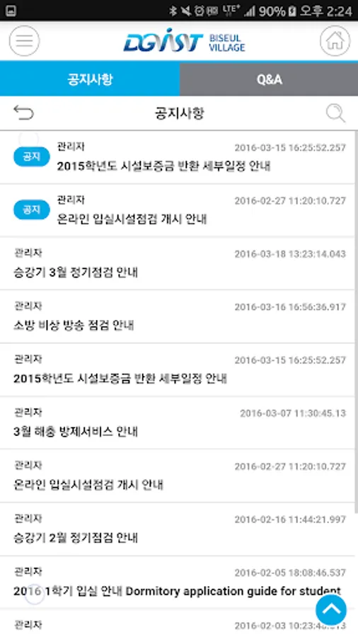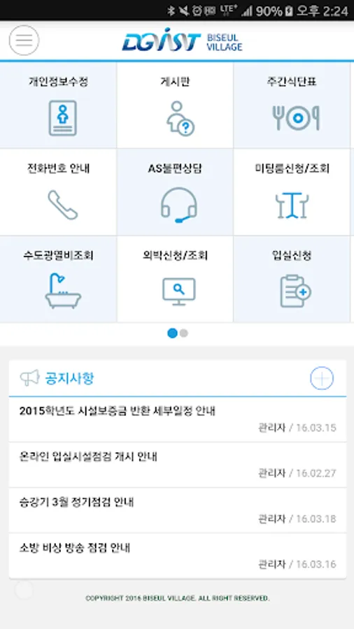 DGIST students provide announcements, various applications, and query functions to a student dormitory.