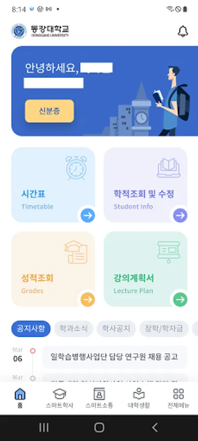 Donggang University Smart Campus app is an official application designed for the convenience of Donggang University students, pre-entry students, and faculty members.