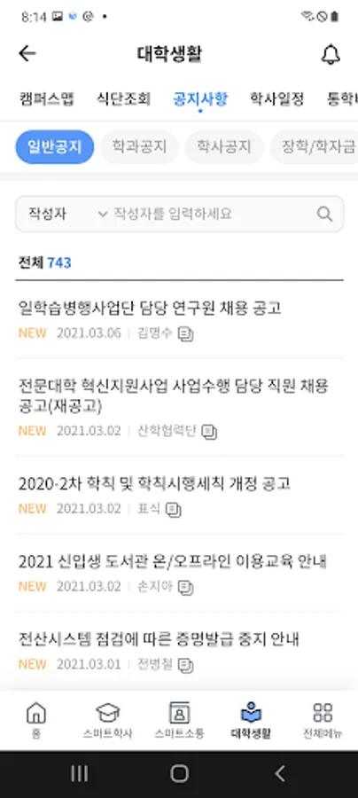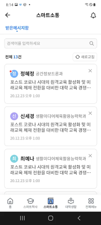 -Academic record inquiry, student number modification, leave/return application/, course history inquiry, class class lecture room inquiry, lecture schedule inquiry, lecture plan inquiry, class evaluation, grade inquiry, scholarship beneficiary details inquiry, tuition payment history inquiry, tuition fee 0 won Registration application, bank account registration, password change, department head/advising student department student academic information inquiry, location support inquiry