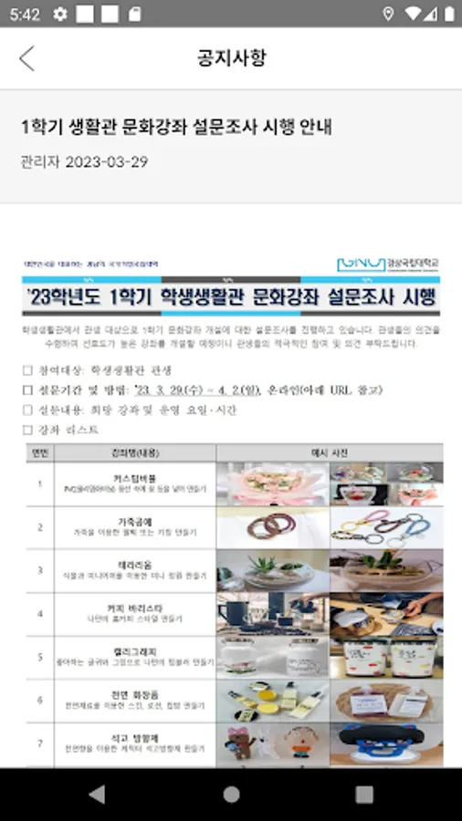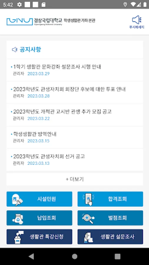 Use the Gyeongsang National University Student Dormitory mobile service for convenient and quick notice.