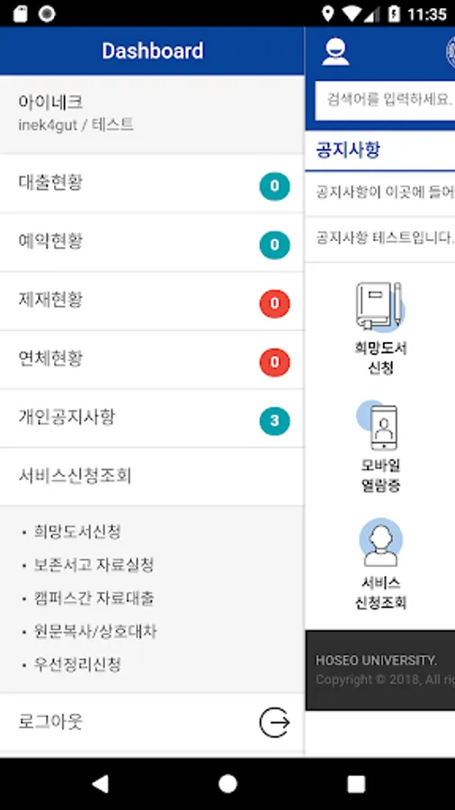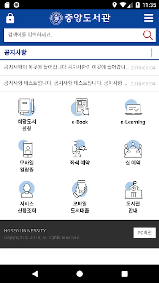 -Library announcement service is provided.