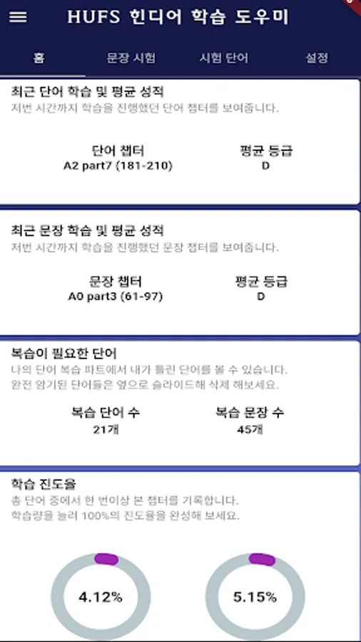 5. Words and example sentences that are lacking in memorization can be studied by collecting unmemorized words later through my word review and my sentence review function.