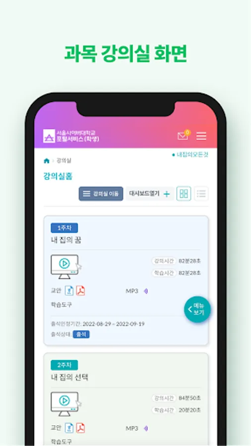 The Seoul Cyber University integrated app increases user convenience and learning efficiency and provides a consistent and optimized user experience.