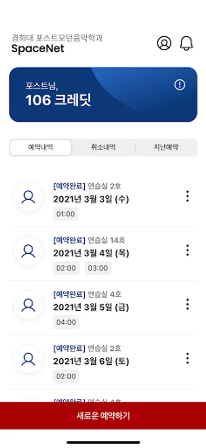 This is a practice room reservation system for current students of Kyunghee University's postmodern department.