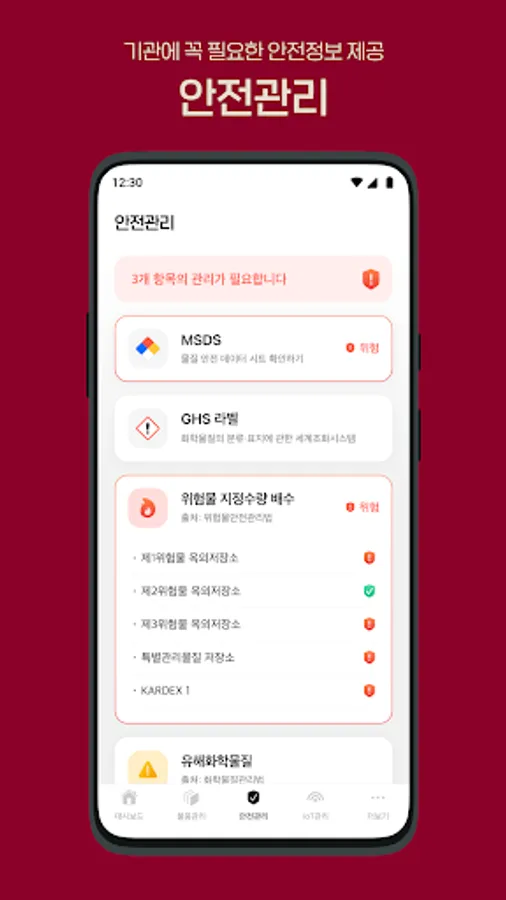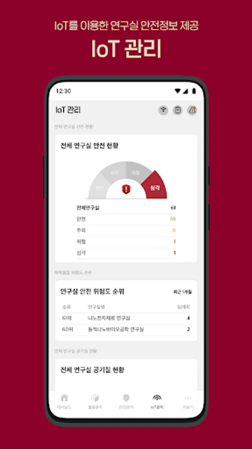 Korea University smart campus lab safety management application.