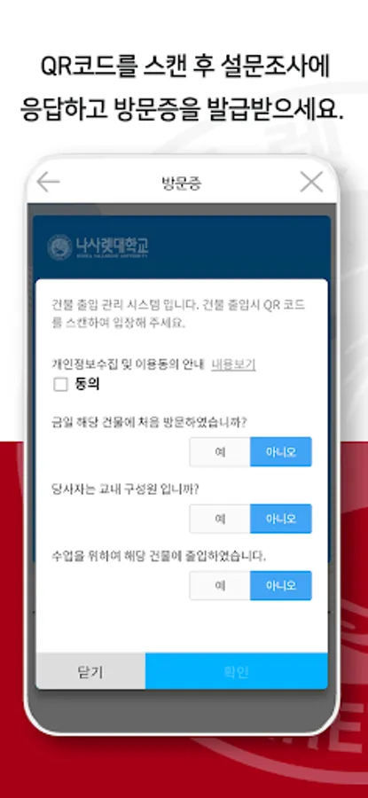 It provides a screen through mobile whether access is possible according to the self-diagnosis result.