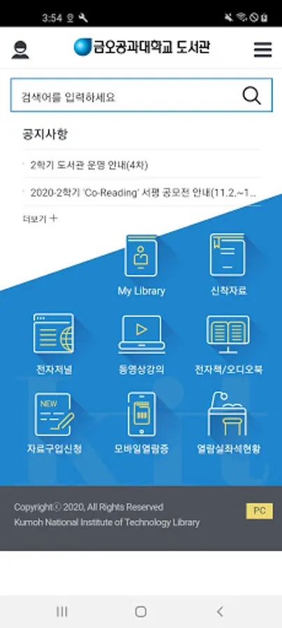 You can check the details of the collection and the status of the book by searching the data in the Keumo Institute of Technology Library, and provide a reservation service for the material being loaned.