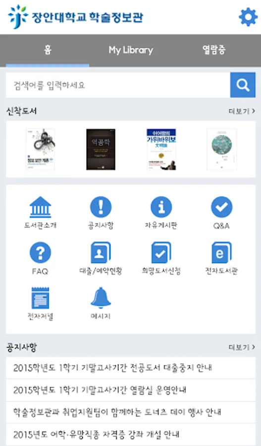 Through the App, you can use the same services provided by the library, such as user guide, integrated search, book rental inquiry and postponement request, and reservation anytime, anywhere.