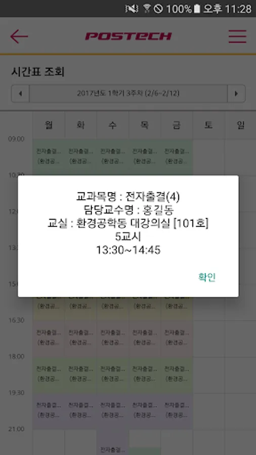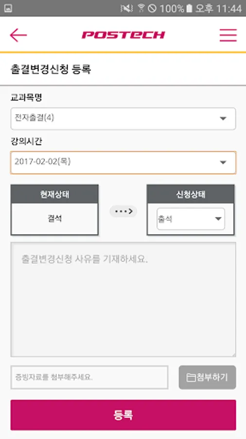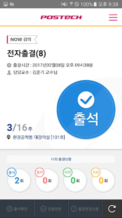 Through the Pohang University of Science and Technology (POSTECH) electronic attendance service, attendance can be conducted on mobile in the classroom.