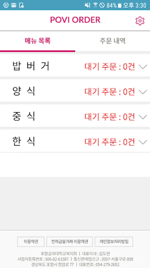 -Pohang University of Science and Technology's student restaurant menu online ordering application used by faculty and students