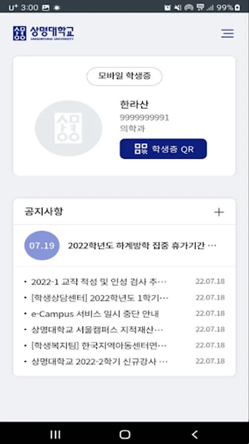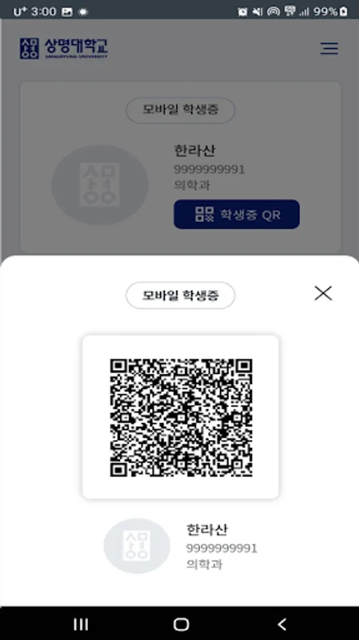 As a mobile ID of Sangmyung University members, you can use the app as a student ID (or ID) at school and related institutions.