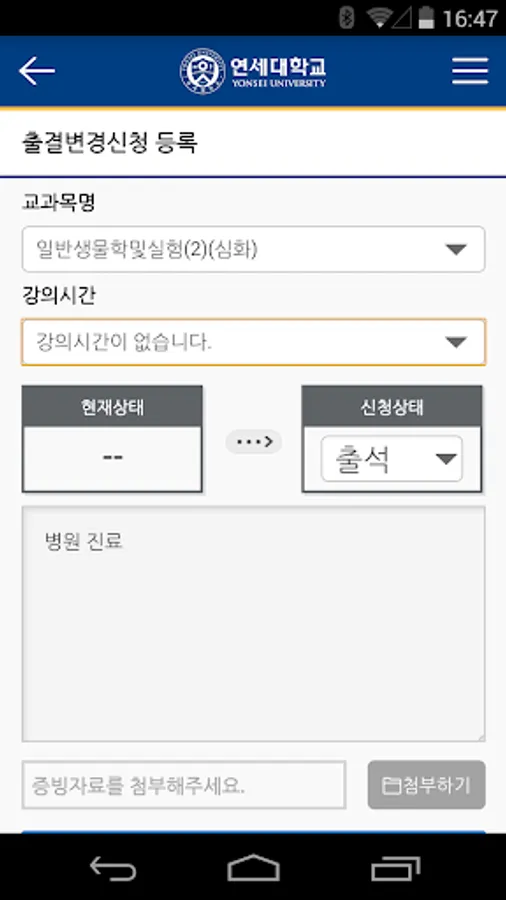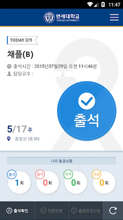 Attendance at Yonsei Electronics provides the school semester class information, schedules, my attendance information.