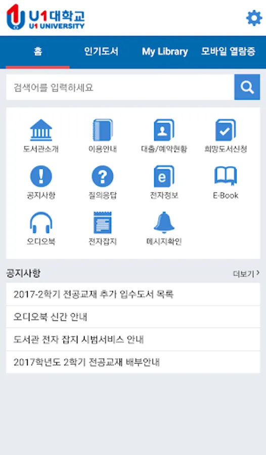 Through the App, you can use the same services provided by the library, such as user guide, integrated search, book rental inquiry and postponement request, and reservation anytime, anywhere.