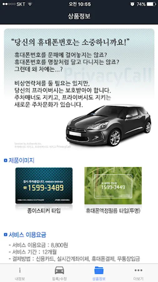 This app is an app designed to register and edit driver's contact information and vehicle number, but since its function has been integrated into the mobile web www.privacycall.co.kr, it can be processed on the site without installing a separate app.