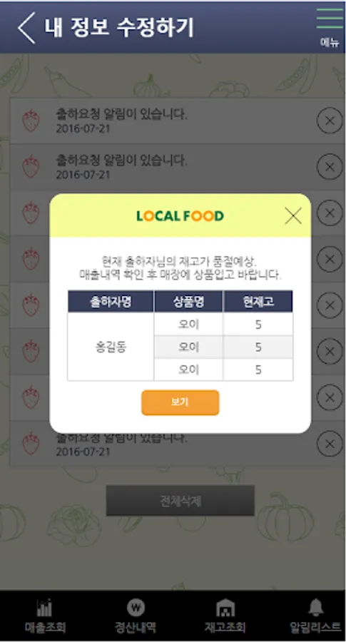 로컬푸드 용인 행복장터 관리자용앱 Screenshots