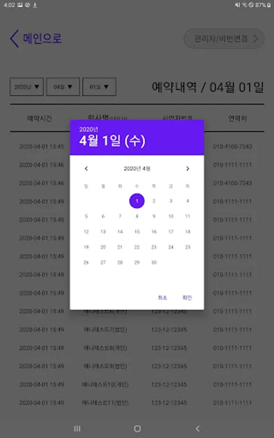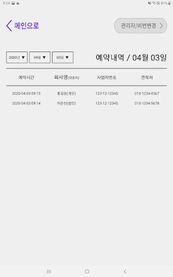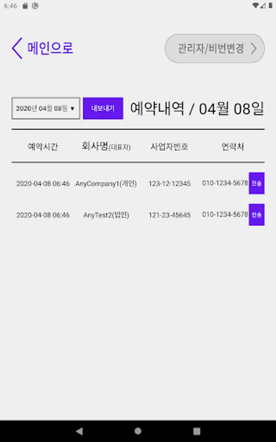 2. 접수 완료 후 관리자페이지를 통해 정보 확인