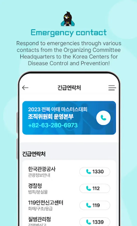 : Providing useful services of emergency contact information / nearby restaurants and convenience stores / COVID-19 self-testing'