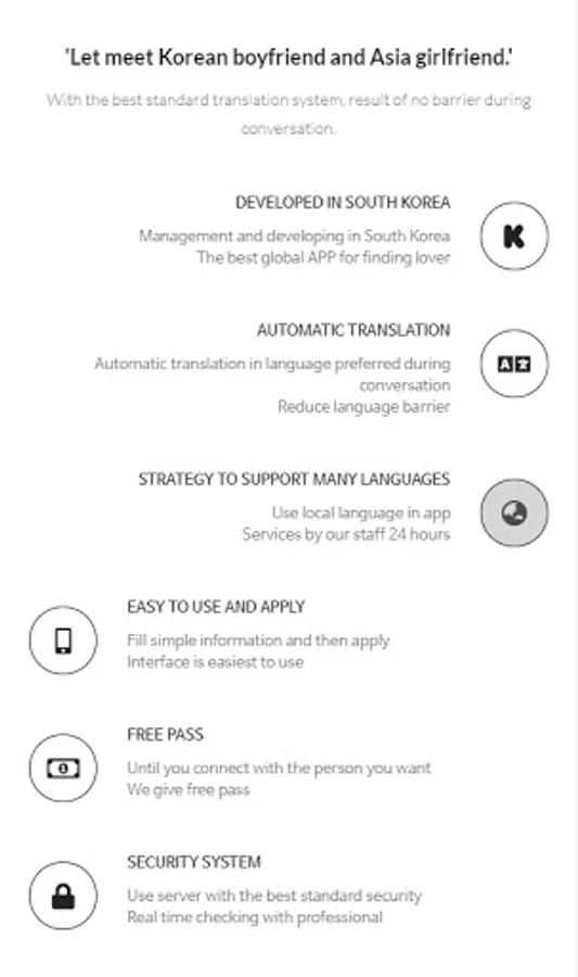 Foreign friend finder application for Asian women in Thailand, Vietnam, China, Japan, Philippines, Cambodia, Uzbek, etc. seeking a Korean boyfriend