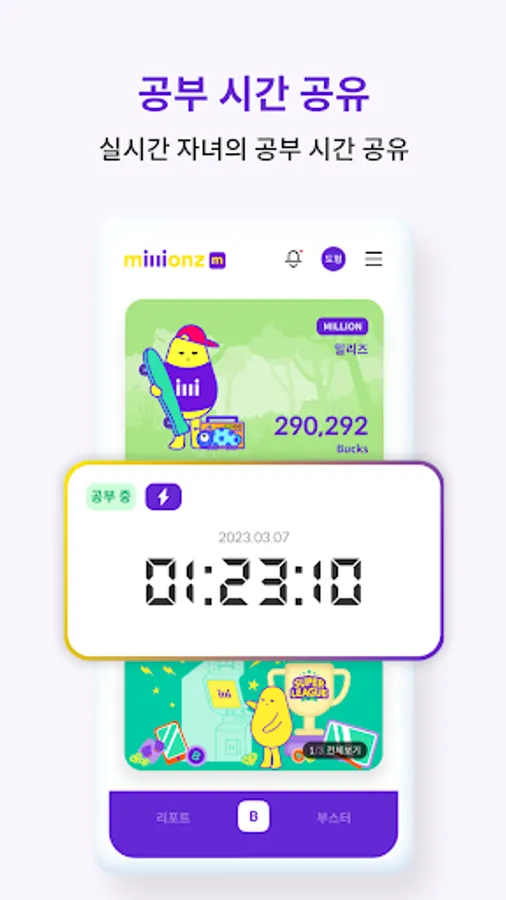 If you use [Booster], the points accumulated for the amount of time you study increase up to 10 times, killing two birds with one stone for your children who study!