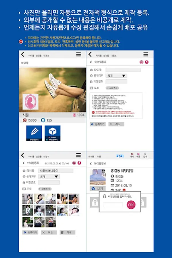 Papi PAPY app made by BibiStar is a tool that automatically creates user's uploaded images as e-book photo book photo albums. It is a tool to help easy distribution and sharing so that anyone can download it.