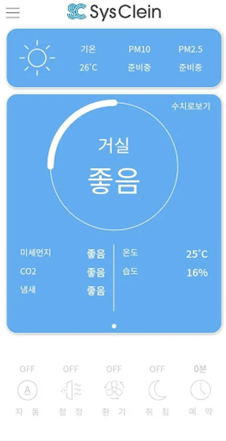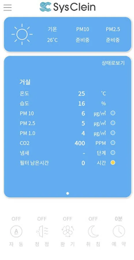 시스클라인은 (주)자이S&D에서 만든 외부공기를 함께 사용하는 공기청정 시스템입니다. 본 어플리케이션은 "시스클라인"의 조작을 담당합니다