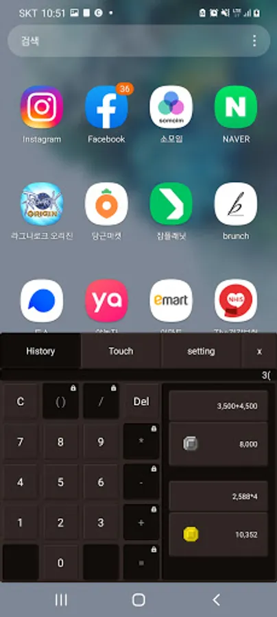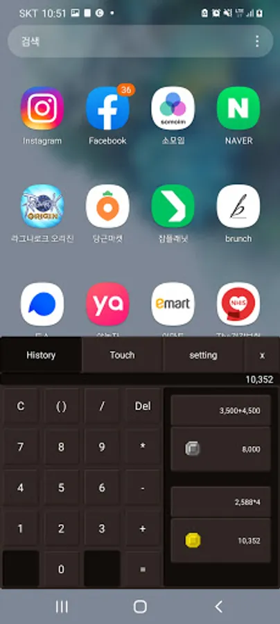 Calculators floating on top of other apps View your shopping purchase history or bank deposit/withdrawal history, calculate and share in real time!.