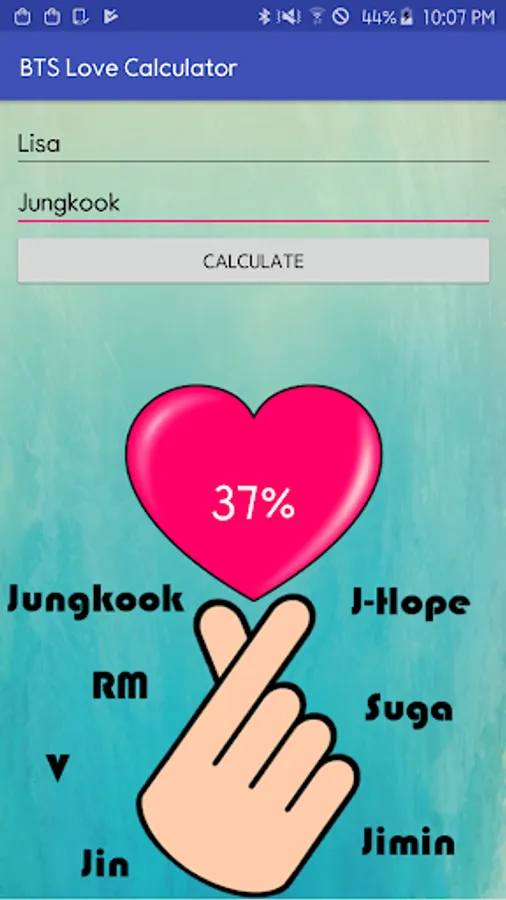 This BTS Love Calculator will display a love percentage based on names.