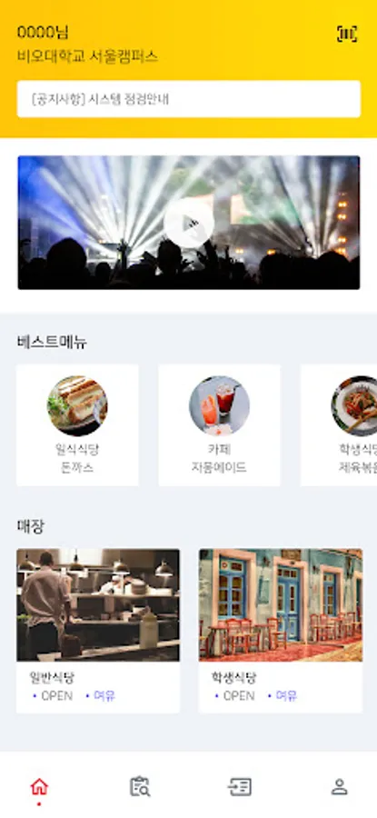 You can check the information of several stores within the university right away, and you can check the weekly meal schedule and today's menu.