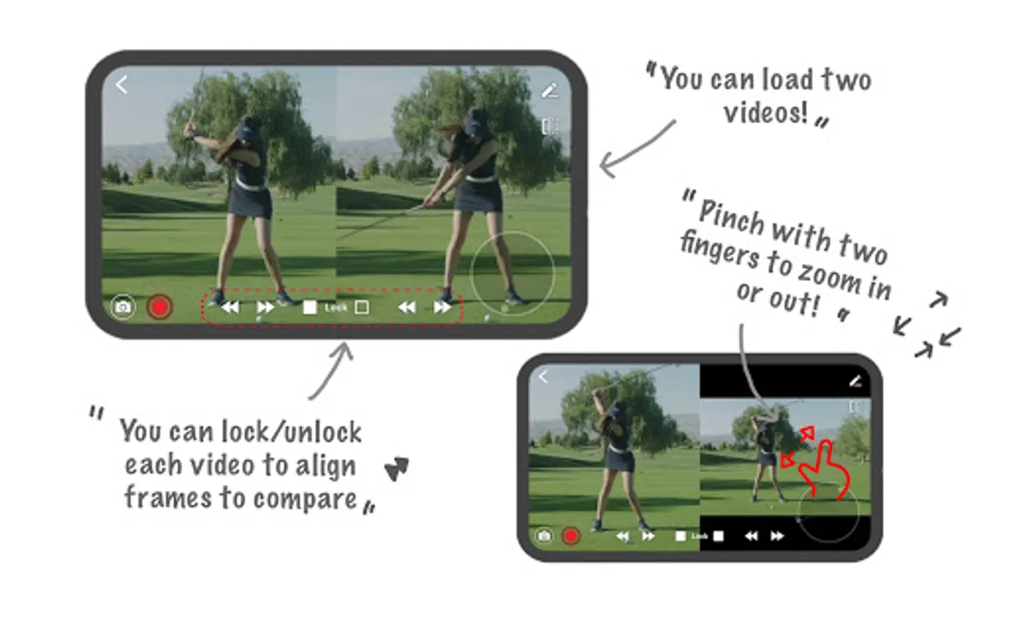 - Compare two videos together (toggle [1] and [1|2] icon)