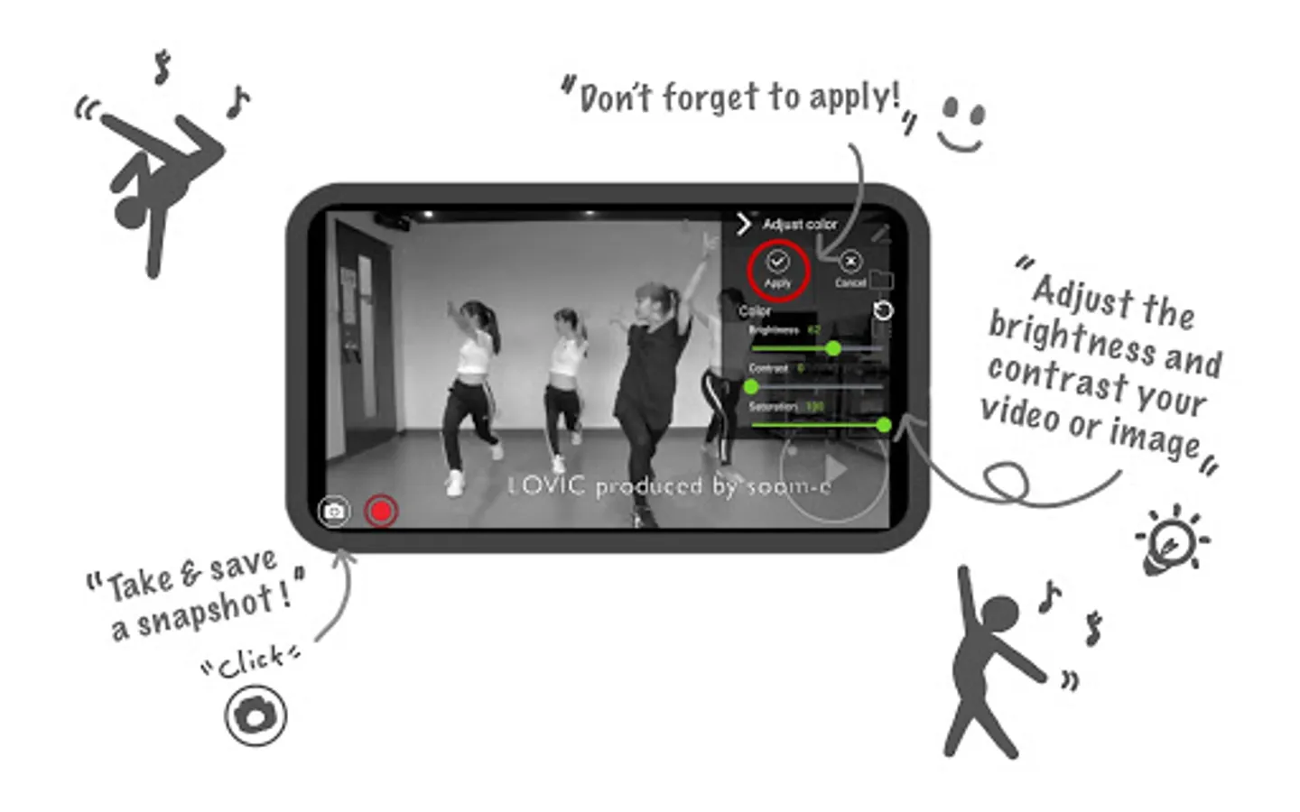 3. Record & snapshot function to save the edited content as a record.You can record the edits from an existing videos as new video and snapshot. You can easily create video materials for your own sports or dance lessons without special tools. For example, to analyze a golf swing, you can repeatedly review multiple videos that highlight a particular part and continue to make revisions.