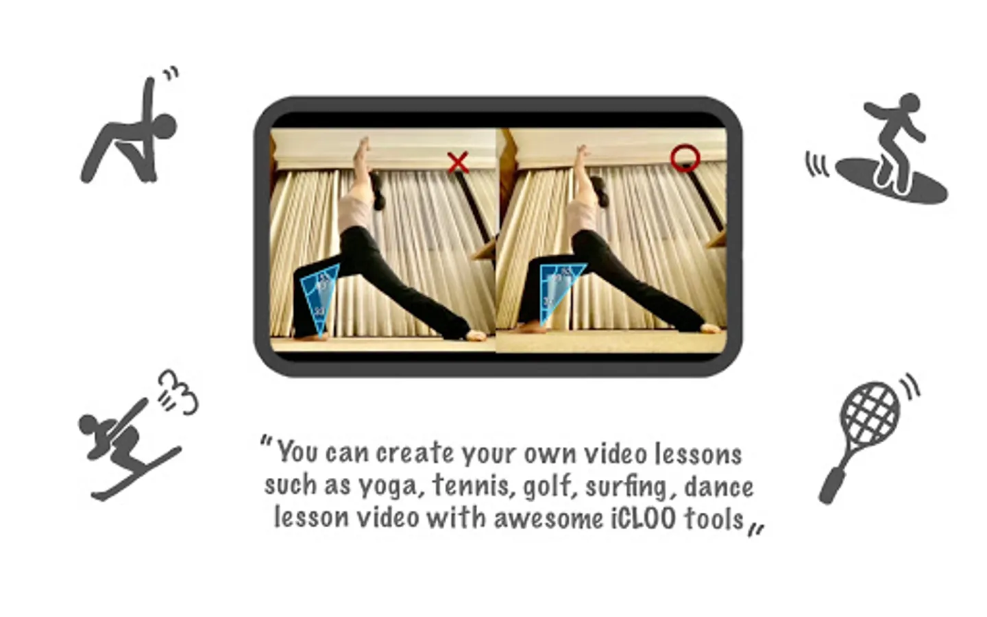 Enjoy your videos in new ways. Sports, dance, cute animals - or yourself. We support awesome jog-wheel playback. Multi-speed and reverse playback are supported. Analyze your sports or dance videos by running slo-mo option. Great tool for checking your golf swing, or dance & yoga moves. Draw lines and shapes. Add text, sticker, or blur-out effect. You can record everything while you play (WYSWYG recording). Try creating your golf, yoga, and dance lesson video for YouTube. Create short videos to share with your friends on TikTok, Instagram, or Twitter. Play iCLOO!