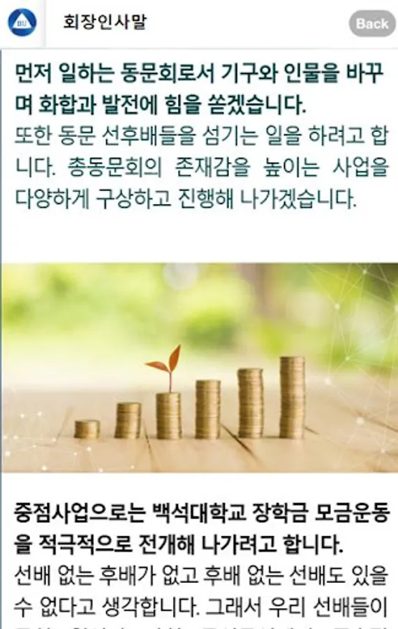 백석대학교총동문회가 건실하게 존재해야 하는 이유와 본질을 잃어버리지 않기 위해서 노력하겠습니다.