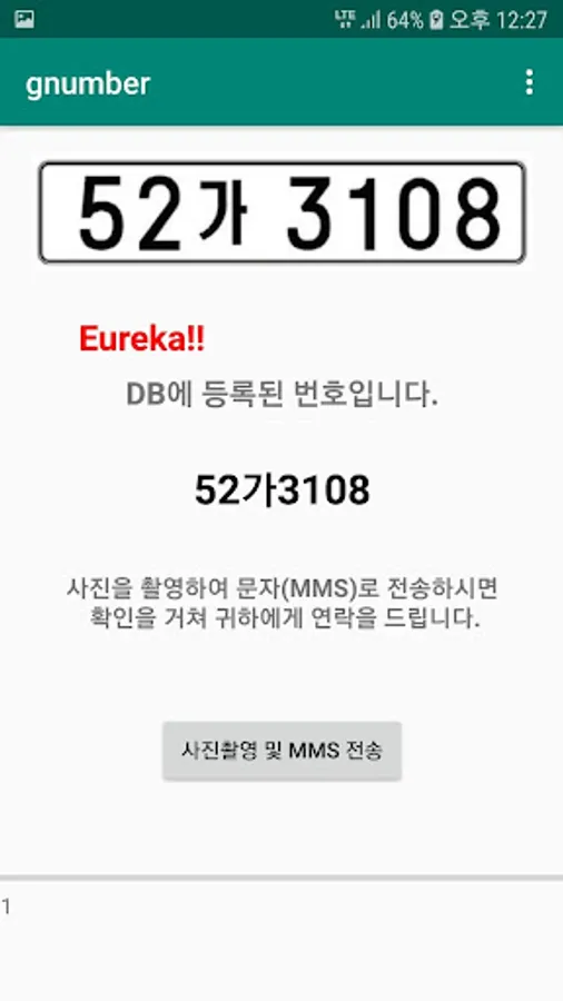 This is an Eureka app that searches for the number of registered cars. EURECAR! Look up your car number!
