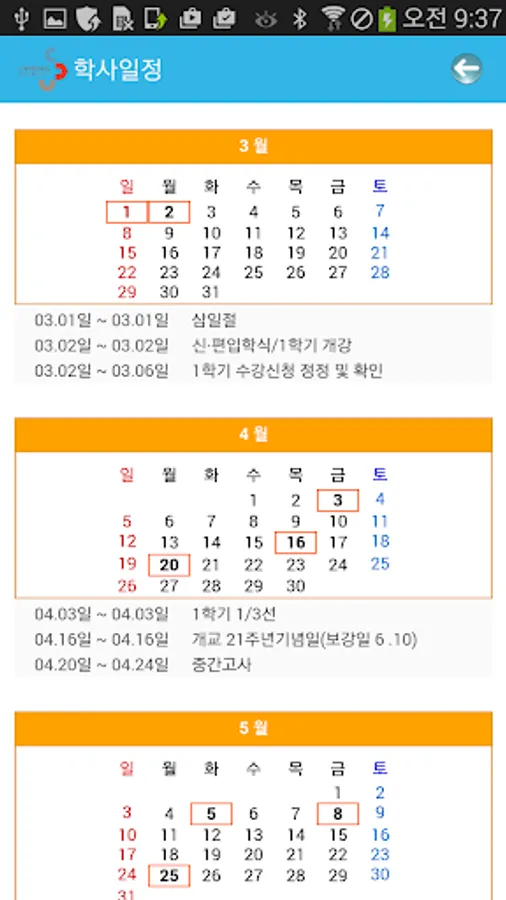 - 학사일정 : 학사일정 안내